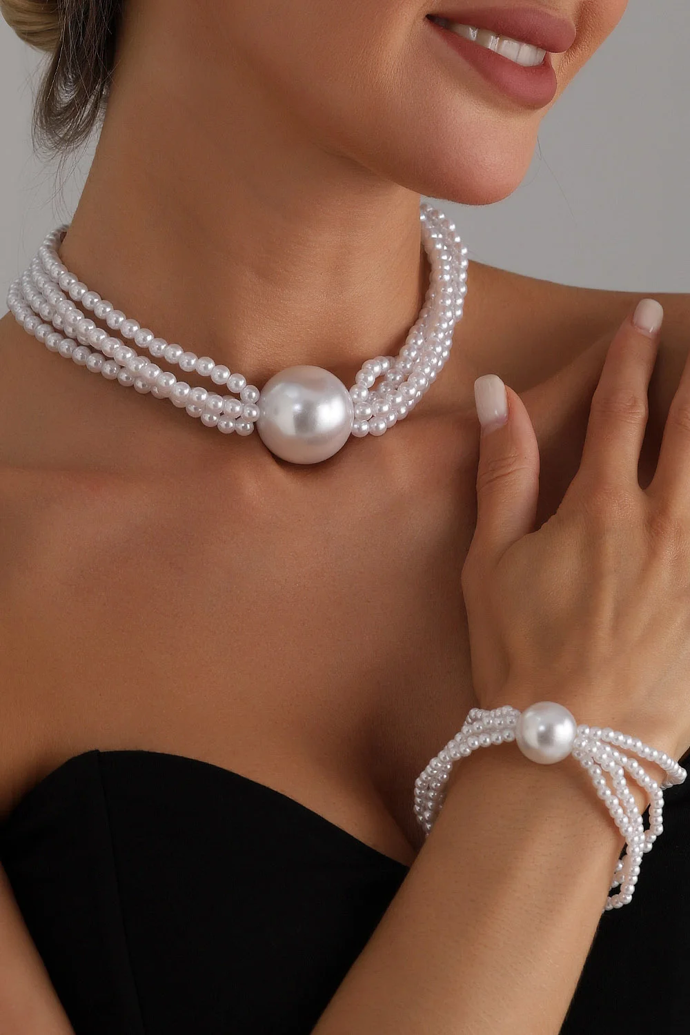Elegant Pearl Multi-Layer Beaded Bracelet Choker Necklace