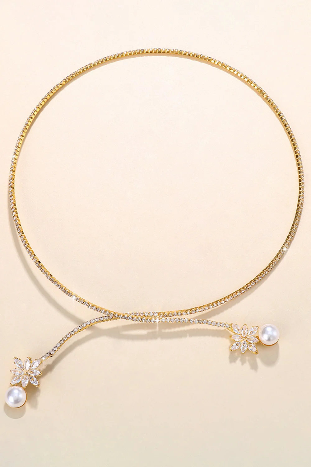 Elegant Retro Silver Floral Rhinestone Pearl Necklace