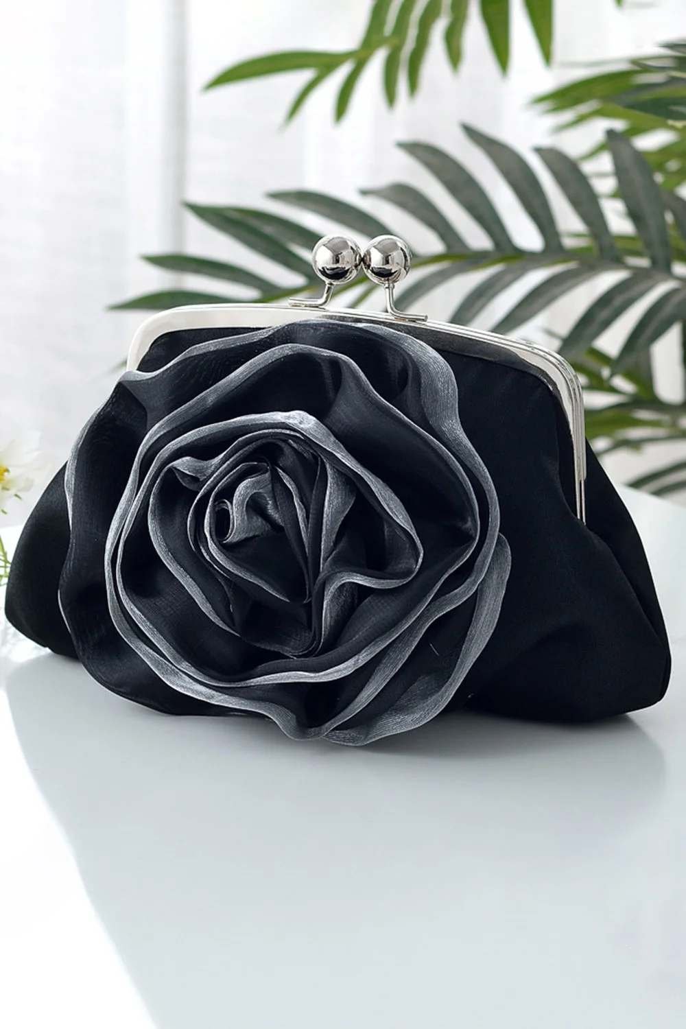 Evening Plain 3D Rose Flower Satin Clutches Bag 2024 - Xpluswear