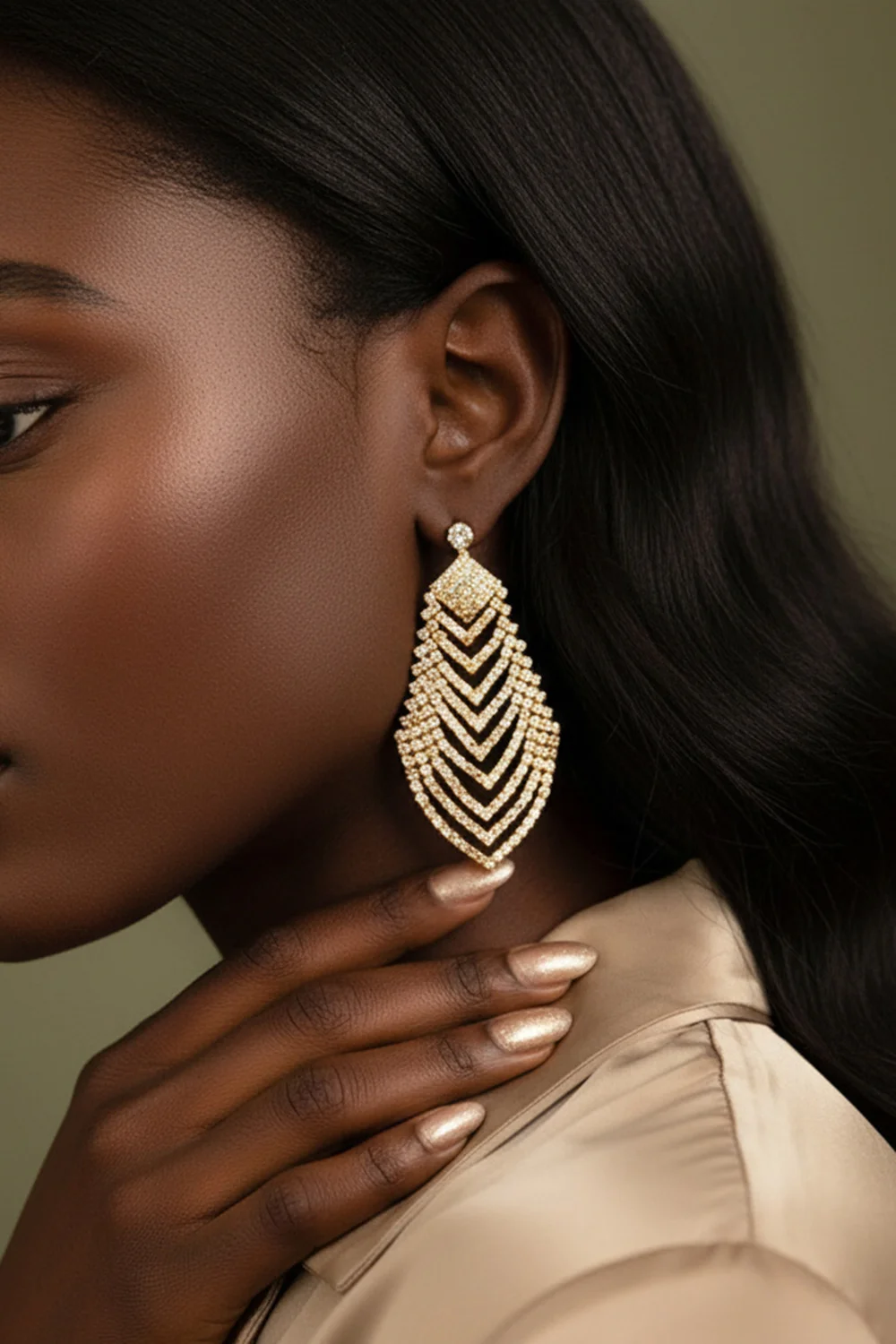 Fashion Glitter Rhinestone Rhombus Leaves Shaped Earrings