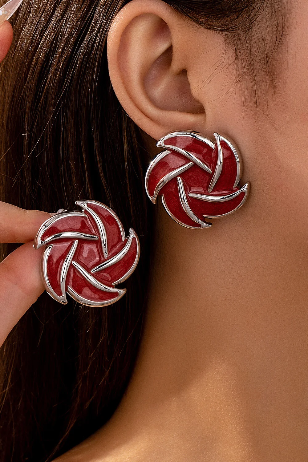 Fashion Purple Dripping Oil Flowers Shaped Smooth Earrings