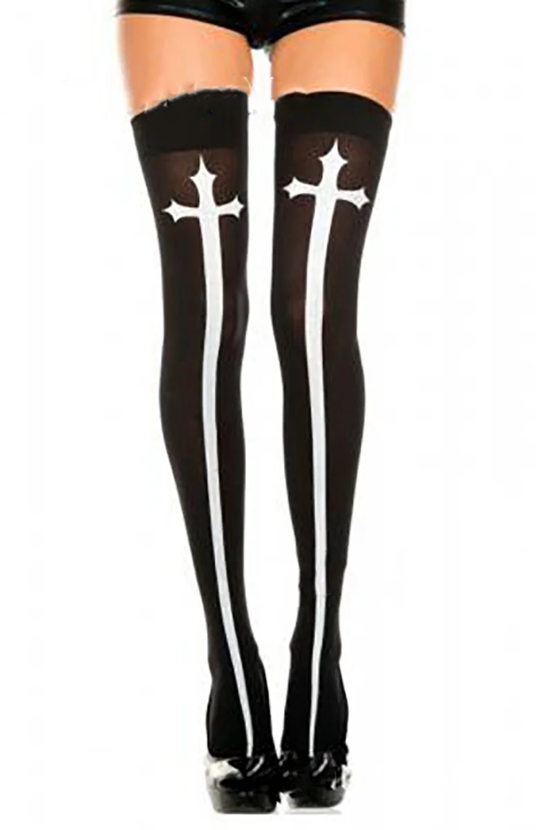 Halloween Costumes Cross Print White Stockings