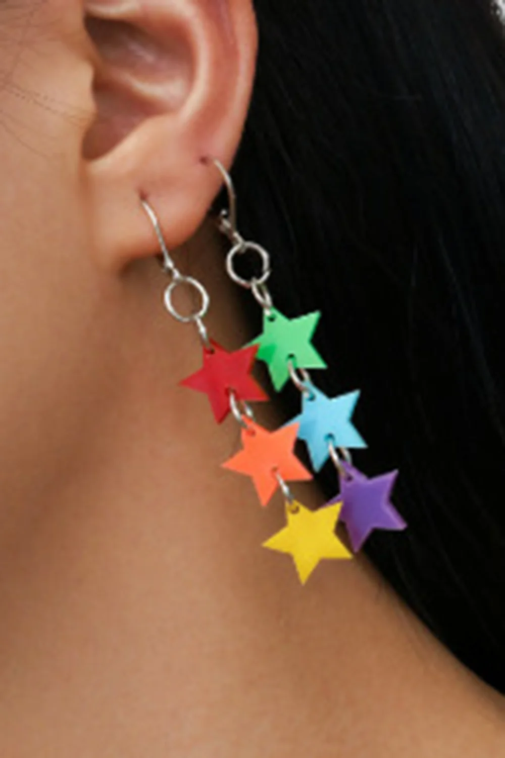 Party Rainbow Love Heart-Shaped Tassels Acrylic Dangle Earrings