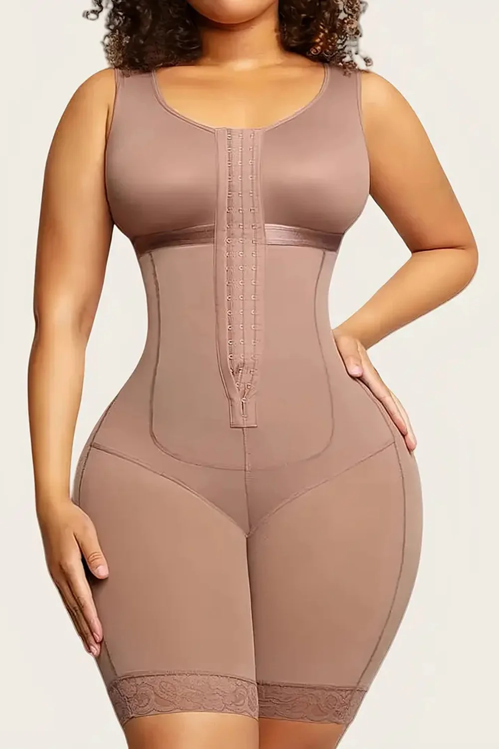 Plus Size Casual Black Multi-Row Steel Buckle Lace Trim Skinny Shapewear 2024 - Xpluswear