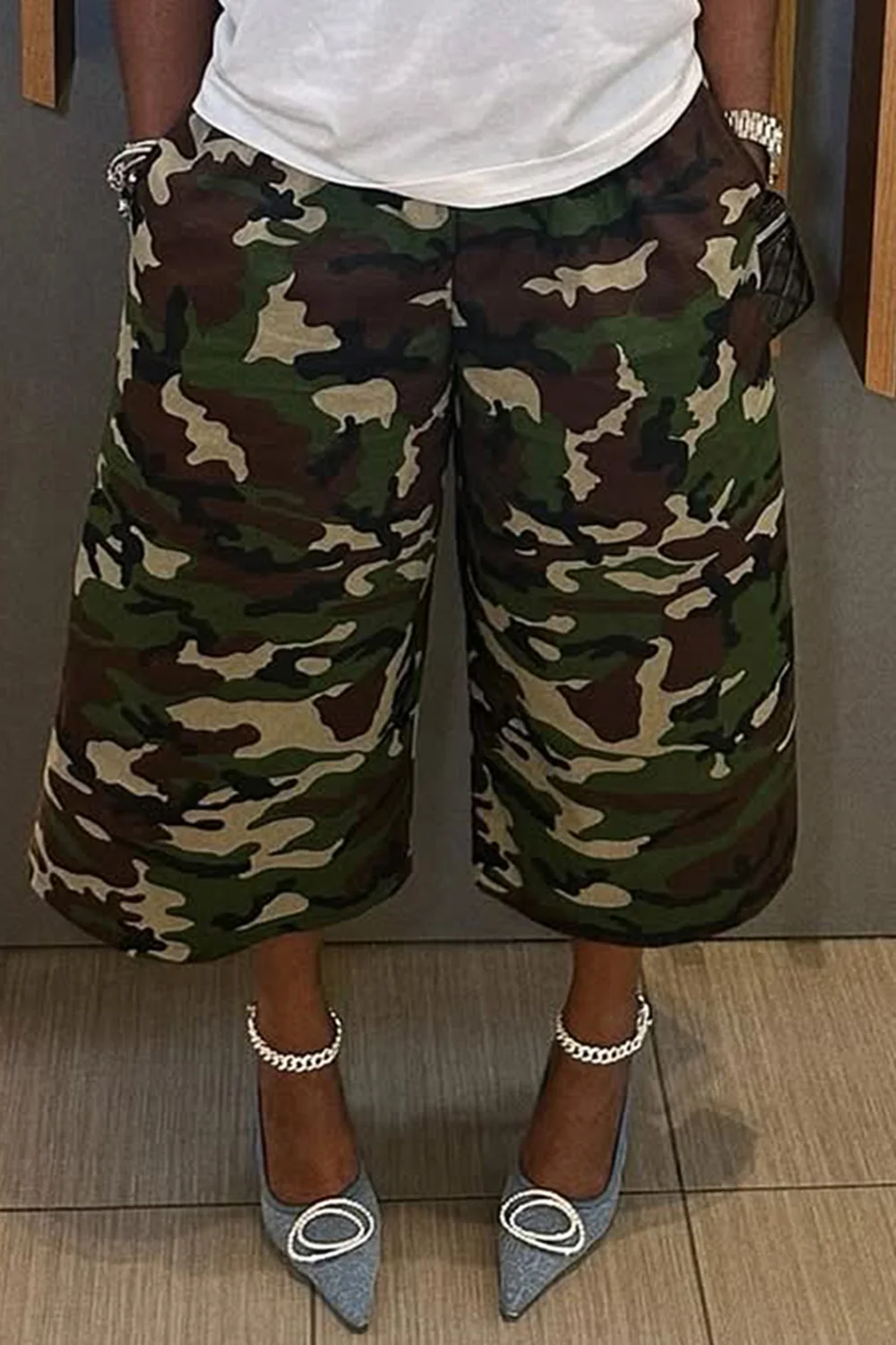Plus Size Daily Army Green Camo Pocket Wide Leg Pants [Pre-Order] 2024 - Xpluswear