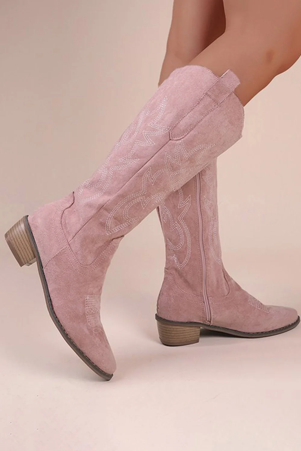 Vintage Khaki Embroidered Pointed Toe V-Cut Boots 2024 - Xpluswear