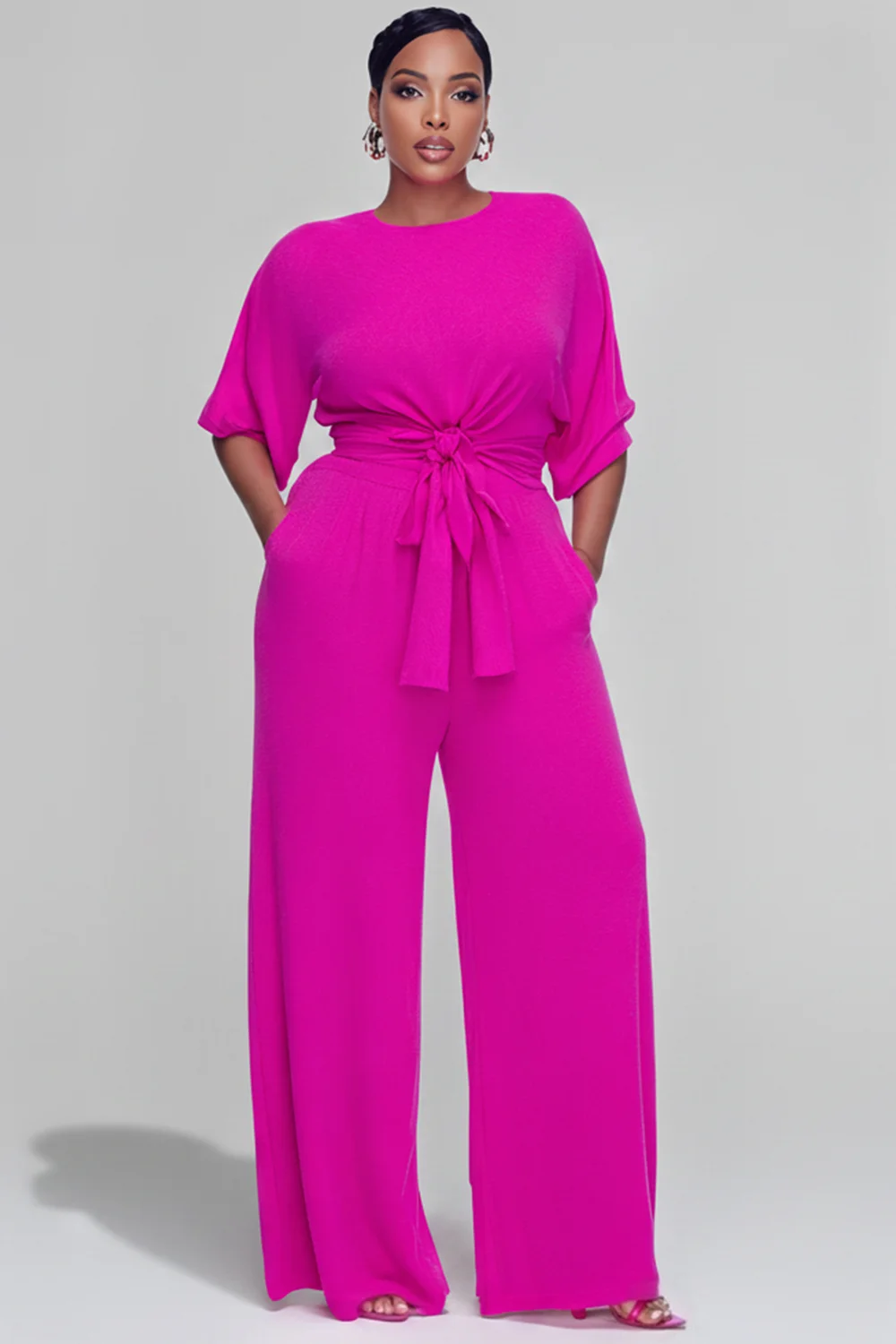 Xpluswear Design Plus Size Daily Casual Hot Pink Round Neck Short Sleeve Pocket Fold Two Piece Pant Sets [Pre-Order] 2024 - Xpluswear