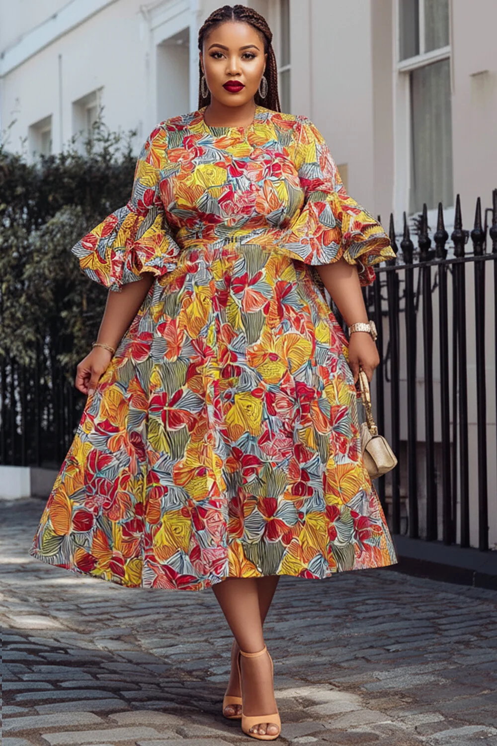 Xpluswear Design Plus Size Daily Multicolor African Print Round Neck Flare Short Sleeve Pocket Ruffle Midi Dresses [Pre-Order] 2024 - Xpluswear