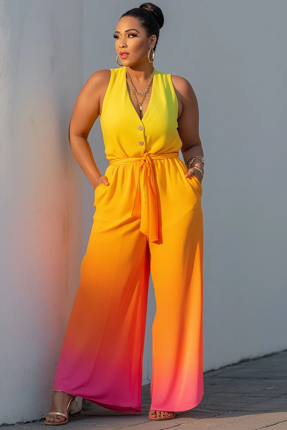 Xpluswear Design Plus Size Daily Rainbow Gradient V Neck Pocket Wrap Jumpsuits [Pre-Order] 2024 - Xpluswear