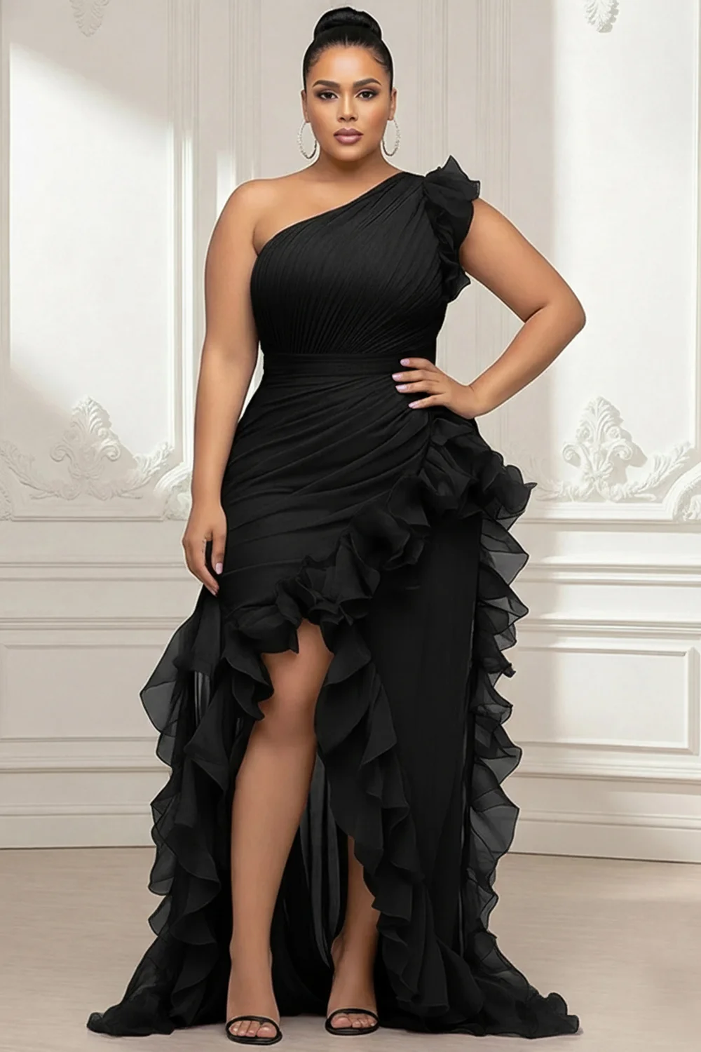 Xpluswear Design Plus Size Formal Purple Oblique Collar One Shoulder Ruffle Split Chiffon Maxi Dresses [Pre-Order] 2024 - Xpluswear