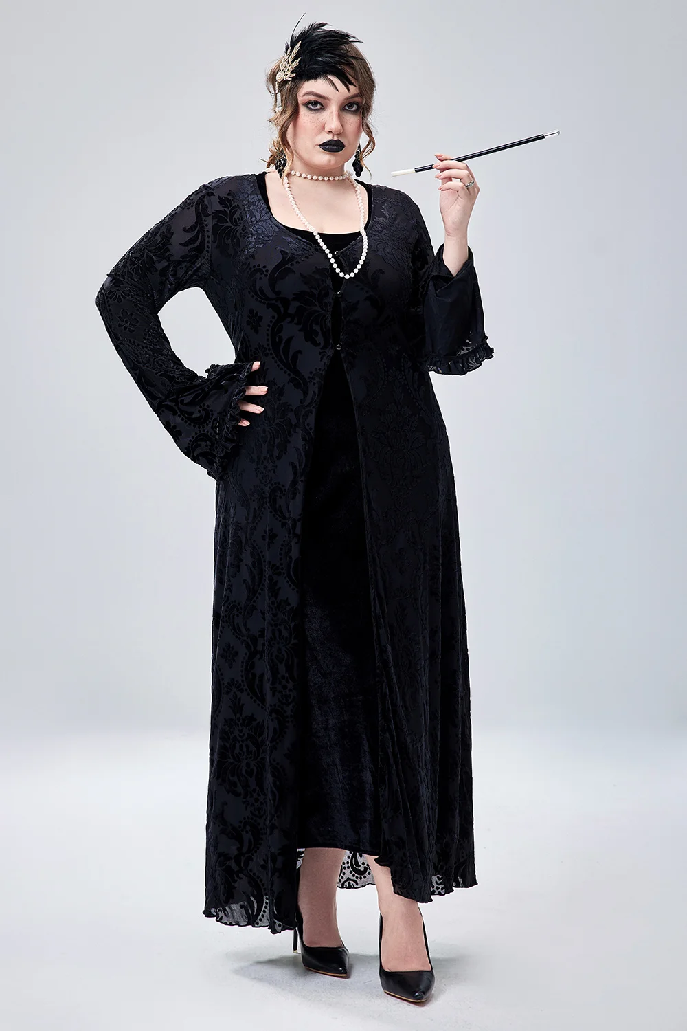 Xpluswear Design Plus Size Halloween Costume 1920s Flapper Dress Gothic V-Neck Long Sleeve Velvet Cardigan(Ships 24h)