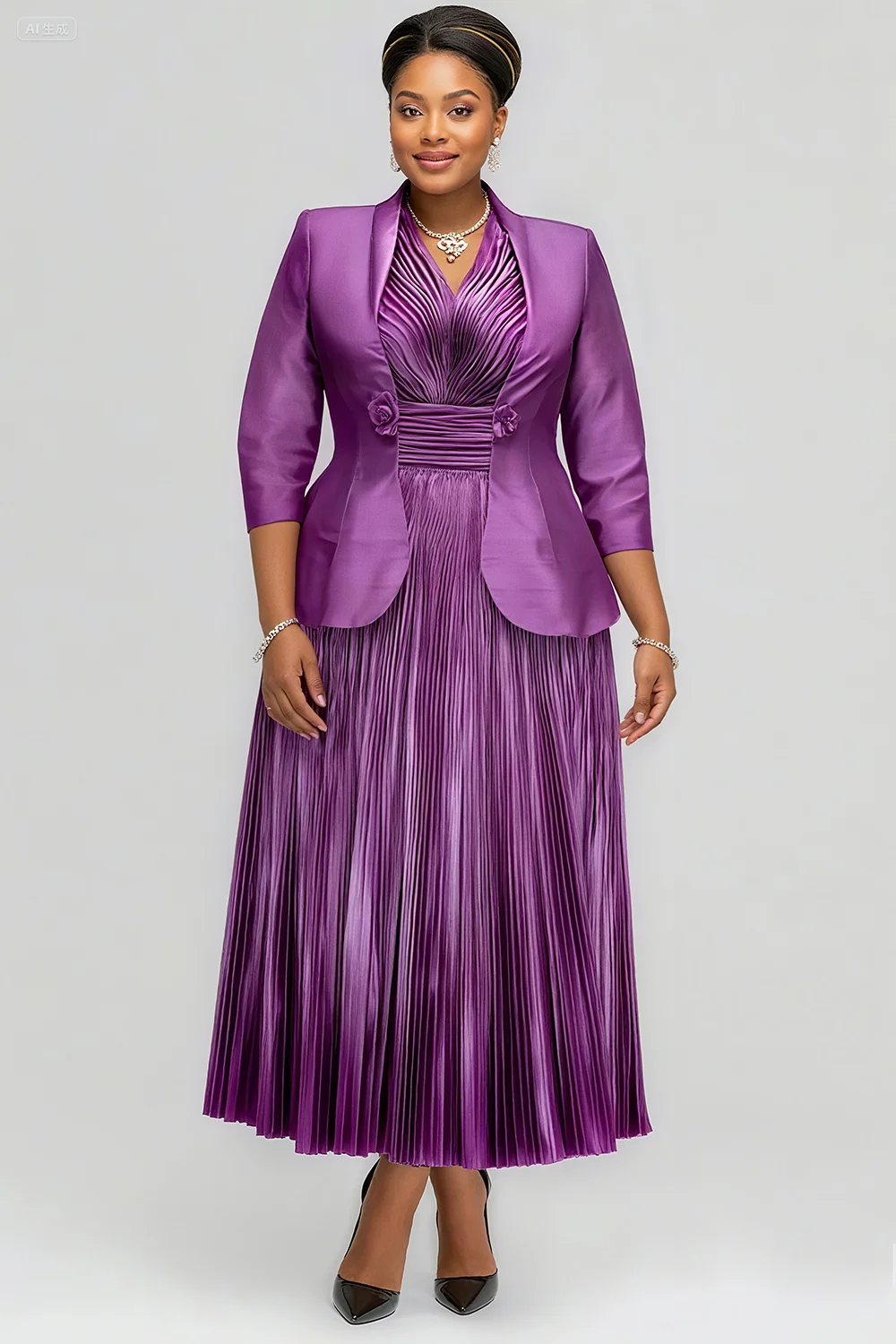 Xpluswear Design Plus Size Mother Of The Bride Purple V Neck Pleated Elegant 3D Two Piece Dress Set 2024 - Xpluswear