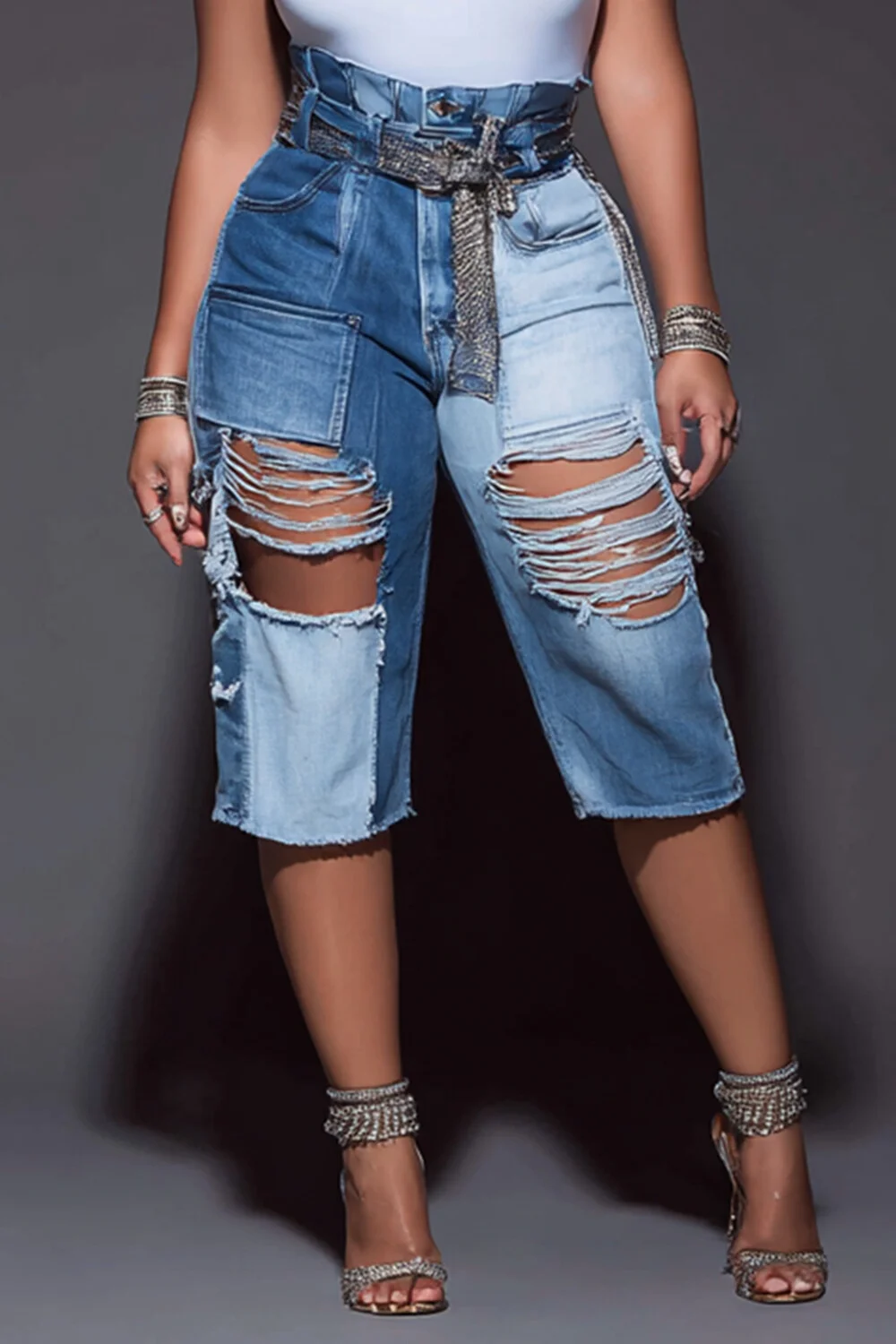 Xpluswear Design Plus Size Party Blue Distressed Denim Jeans [Pre-Order] 2024 - Xpluswear