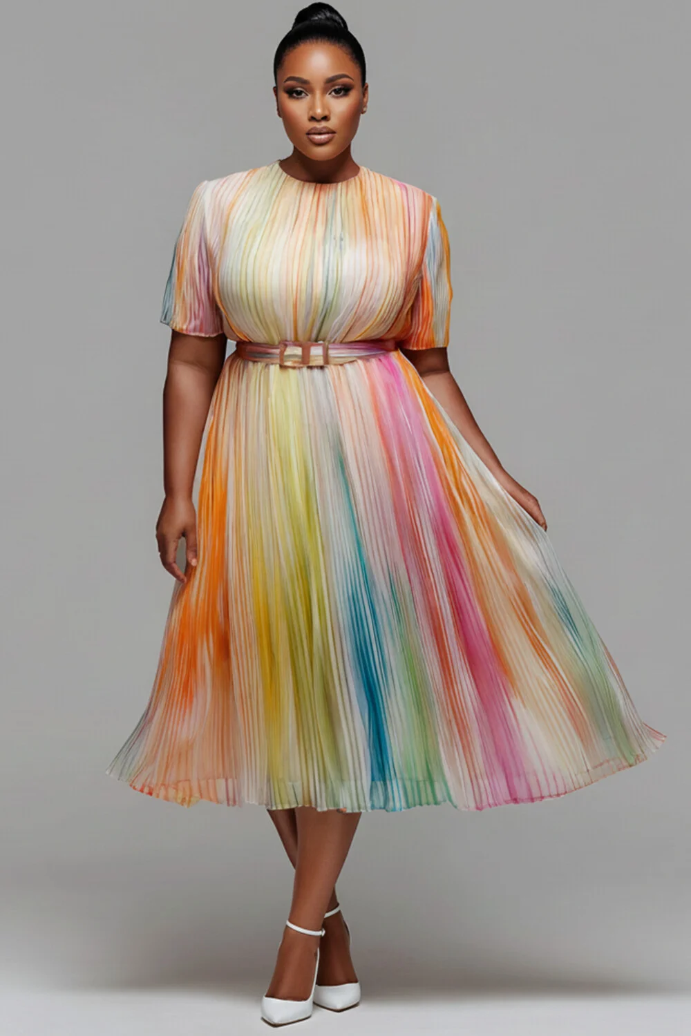 Xpluswear Design Plus Size Wedding Guest Elegant Rainbow Round Neck Short Sleeve Pocket Wrap Chiffon Midi Dresses [Pre-Order] 2024 - Xpluswear