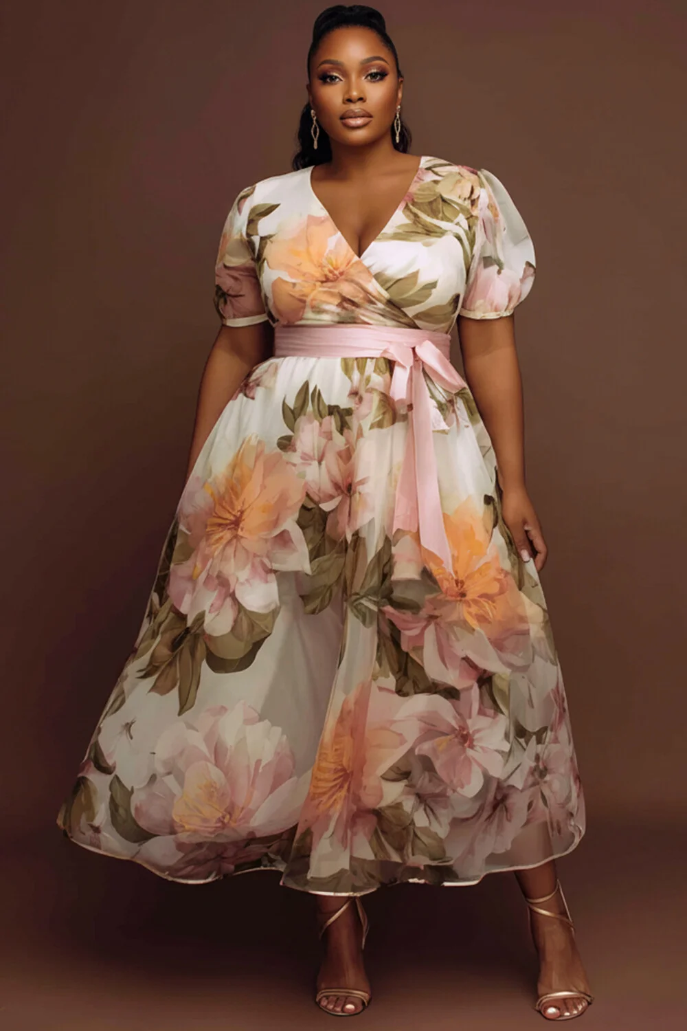 Xpluswear Design Plus Size Wedding Guest White Floral Wrap Neck Short Sleeve Wrap Chiffon Midi Dresses [Pre-Order] 2024 - Xpluswear